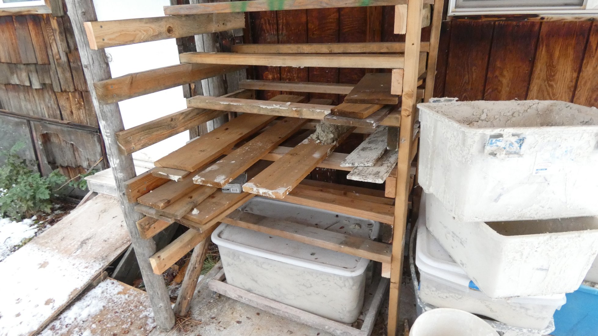 this fall I built this set of shelves so I can dry the sloppy clay,