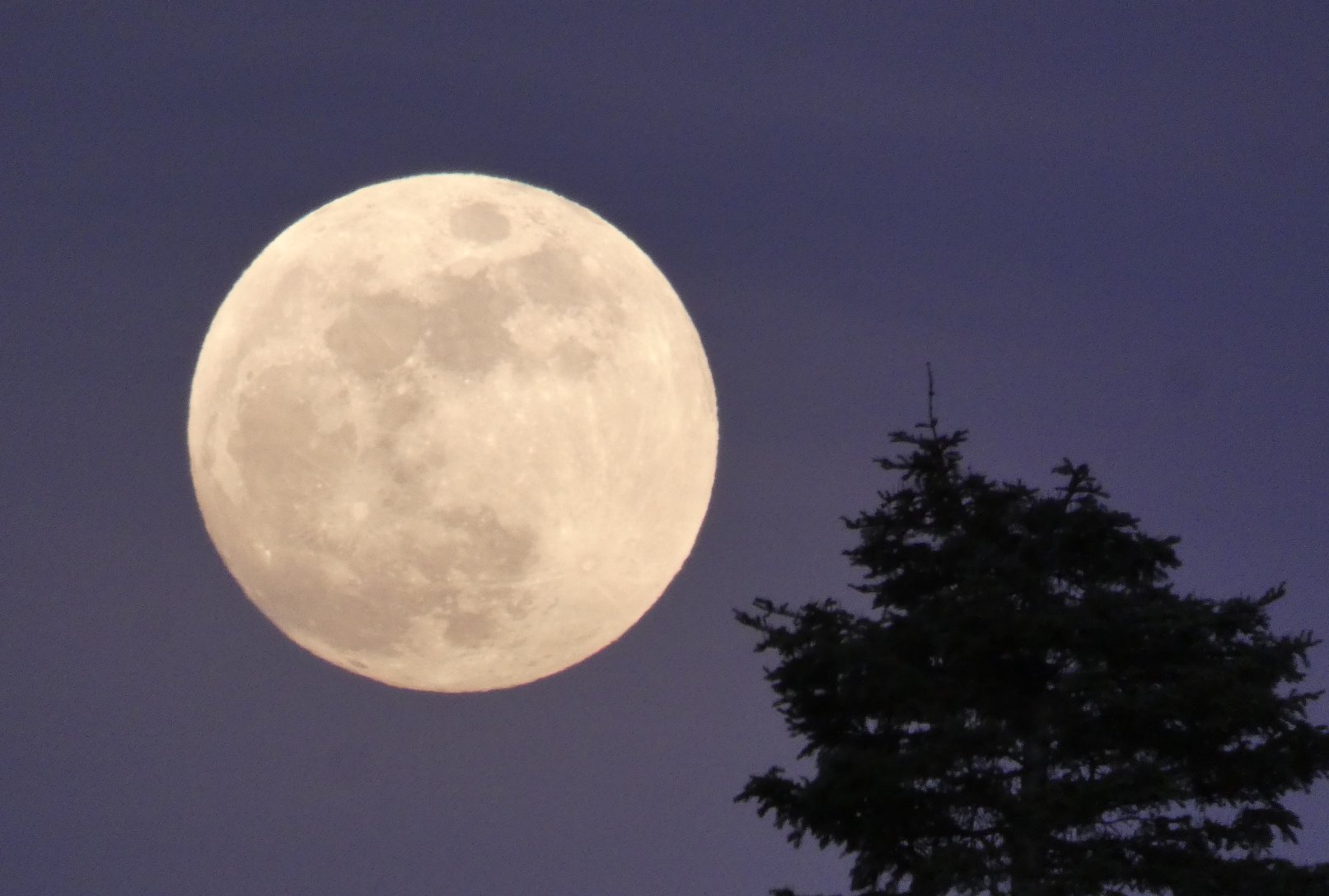March 2 We saw the first buttercups and grass widows today in our area. The moon is eclipsing tonight, but between 3 and 4 am, so here's one of my better full moon photos at dusk..
