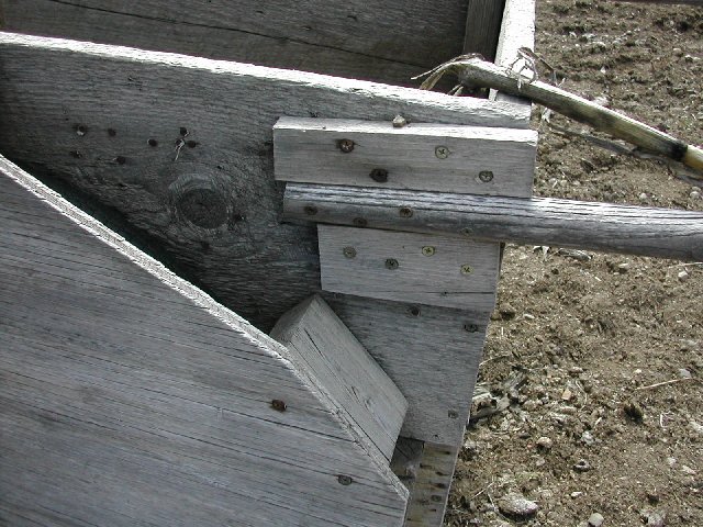 The final step is to add some two by two (or 2 X 4) posts at the back, either behind the wheels, or if there isn't room there, under the handles of the cart.