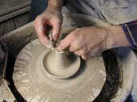 After centering about 2 pounds of clay, poke a hole in