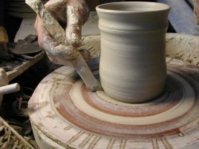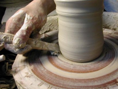 When a pot is finished, I trim cylindrical shapes like
