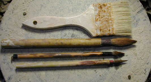 The hake (ha' kay) brush can be used to manipulate thickness of slip over